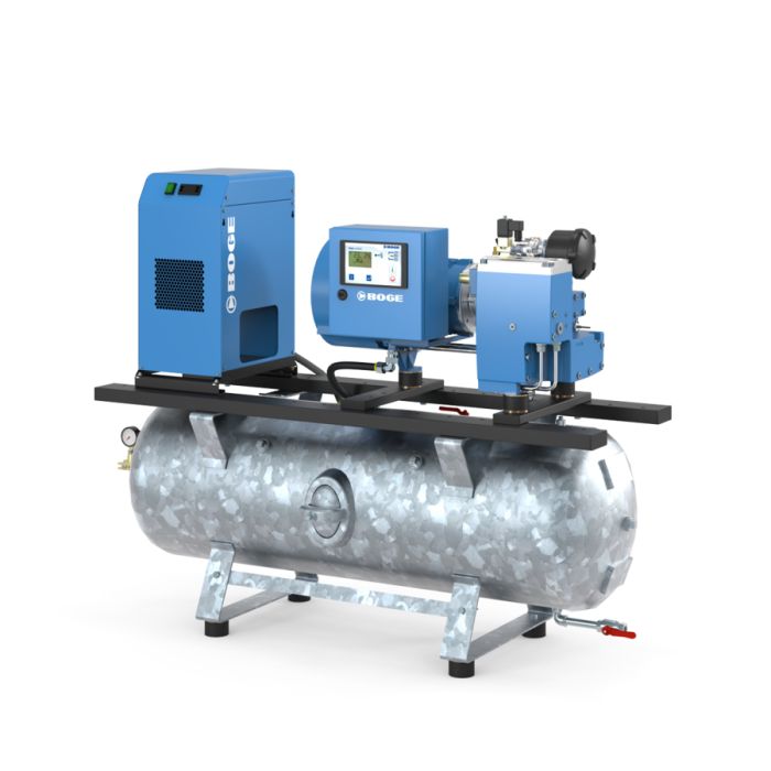 De schroefcompressoren van de BOGE C-serie verenigen meerdere voordelen: de geÏntegreerde bouwwijze met de BOGE compacte module zorgt voor korte wegen en minder leidingen - daardoor zijn de compressoren bijzonder efficiënt en betrouwbaar. Zij hebben bovendien bijzonder weinig plaats nodig. De compressoren werken nauwelijks hoorbaar en absoluut vibratiearm. Het speciale BOGE-compressorblok onderscheidt zich door een bijzonder laag vermogensbehoefte. De compressorbesturing gebeurt via de BASIC besturing met LC-display en druksensortechniek. Optionele FOCUS besturing met geïntegreerde efficiëtieaanduiding en talrijke besturings- en controlemogelijkheden. Er kunnen tot 3 bijkomende compressoren aan deze besturing aangesloten worden (wisselend belasting) - Optionele frequentieomvormer regelt het toerental van de aandrijfmotor. Aandrijving door de frequentieregeling niet op 1 toerental gefixeerd - regeling naar behoefte. Zachte starts en stops ontzien het materiaal. Optionele koeldroger - ofwel gemonteerd op een persluchtketel (direct gekoppelde en/of frequentiegeregelde C-serie) of onderaan ingebouwd (C-serie met droger). Perslucht zonder bijkomende vloeroppervlakte.