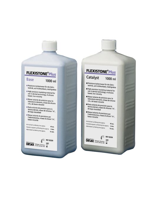 Isolatie- en modelleermassa op basis van A-siliconen, lage viscositeit, vast, zeer hoge eindhardheid (85 Shore A). Uitstekende verwerkingseigenschappen, vloeit niet weg bij het opbrengen. Voor het isolerend inbedden van gebitsprothesen. Isoleert kunststof en prothesetanden tegen gips.