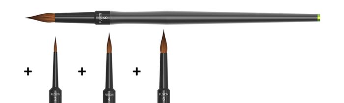 Premium Kolinsky met synthetische vezelversterking. Spitse, magnetische en vervangbare punt.
