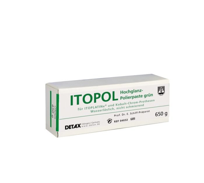 Hoogglanspolijstpasta voor chroom-kobaltlegeringen. Niet vet, in water oplosbaar en smeert niet uit.