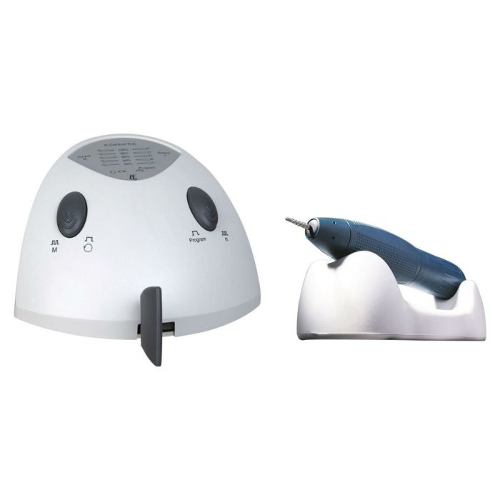 | Technische omschrijving | Handstuk: ø 25-28 mm, lengte 149 mm; rechtslopend 1000-35.000 rpm, linkslopend 1000-5000 rpm; vermogensafgifte max. 85 W; draaimoment max. 4,5 Ncm; spantang-ø 2,35 mm; afwijking van de ronde loop < 0,02 mm; spansysteem hechtvermogen min. 70 N; 216 g (zonder kabel) Besturingsapparaat: 100-240 V, 50/60 Hz; max. 220 W; 3 kg |