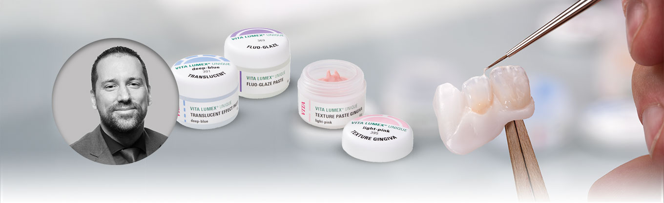 Opleiding in het afwerken van full-contour restauraties met VITA LUMEX UNIQUE vloeibare keramiek. Deze cursus leert je de techniek van het werken met VITA LUMEX UNIQUE – een vloeibaar keramieksysteem dat speciaal is ontwikkeld voor micro-layering van volledig anatomische structuren in zirkoniumdioxide en lithiumdisilicaat!