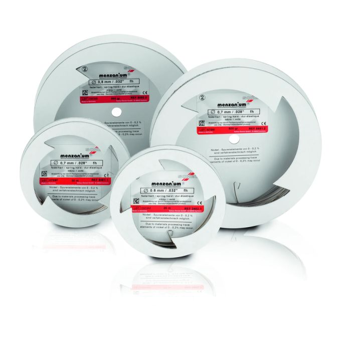 Corrosiebestendige en breukvaste klemdraad, veerhard. Deze nikkelvrije klemdraad is geschikt voor gedeeltelijke protheses en orthodontische werkstukken.