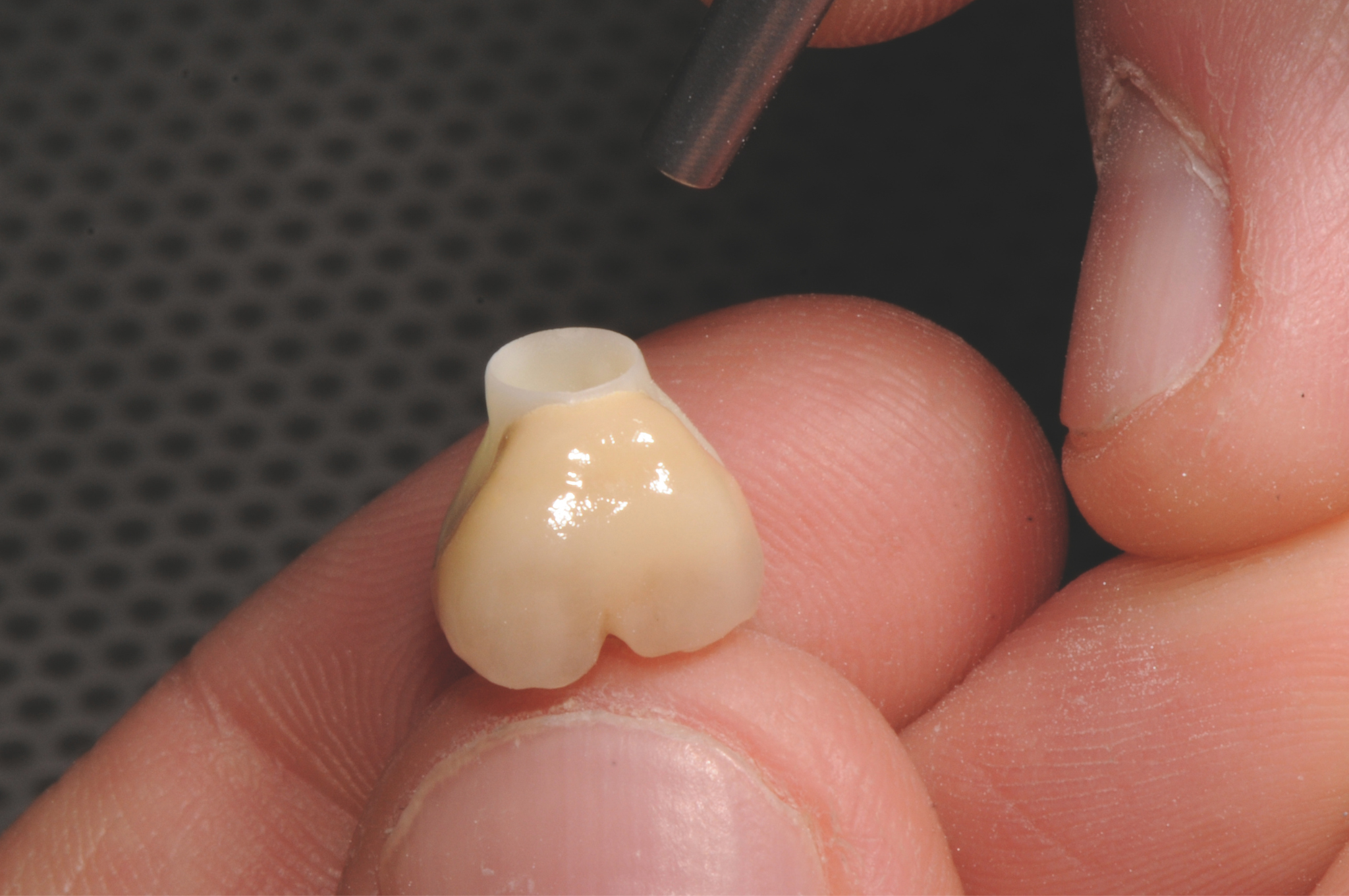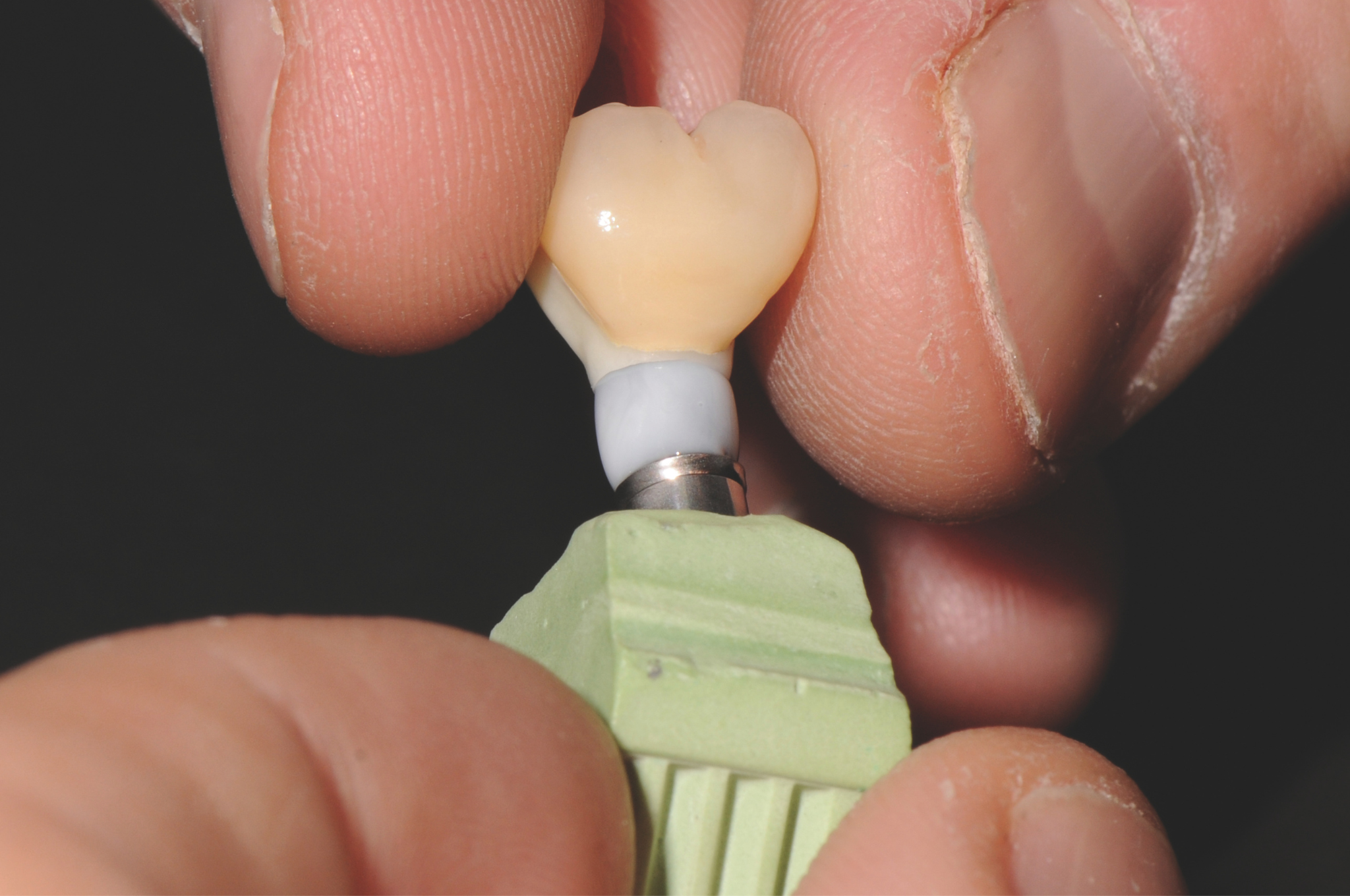 Kleven van een titanium hechtbasis op individuele abutments uit zirkoniumoxide