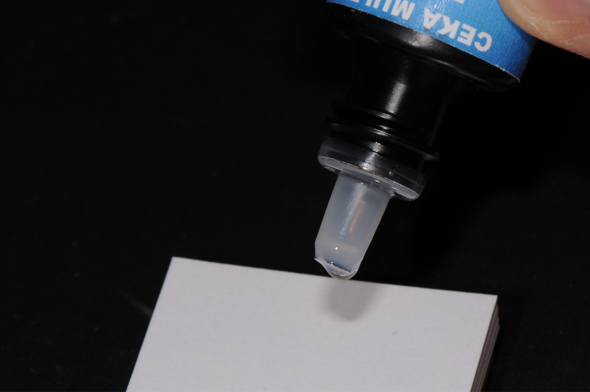 Breng CEKA Multi Composite met de mengcanule in een dunne, homogene laag aan op het oppervlak en verbind de componenten met elkaar. Verwijder overtollig materiaal onmiddellijk.