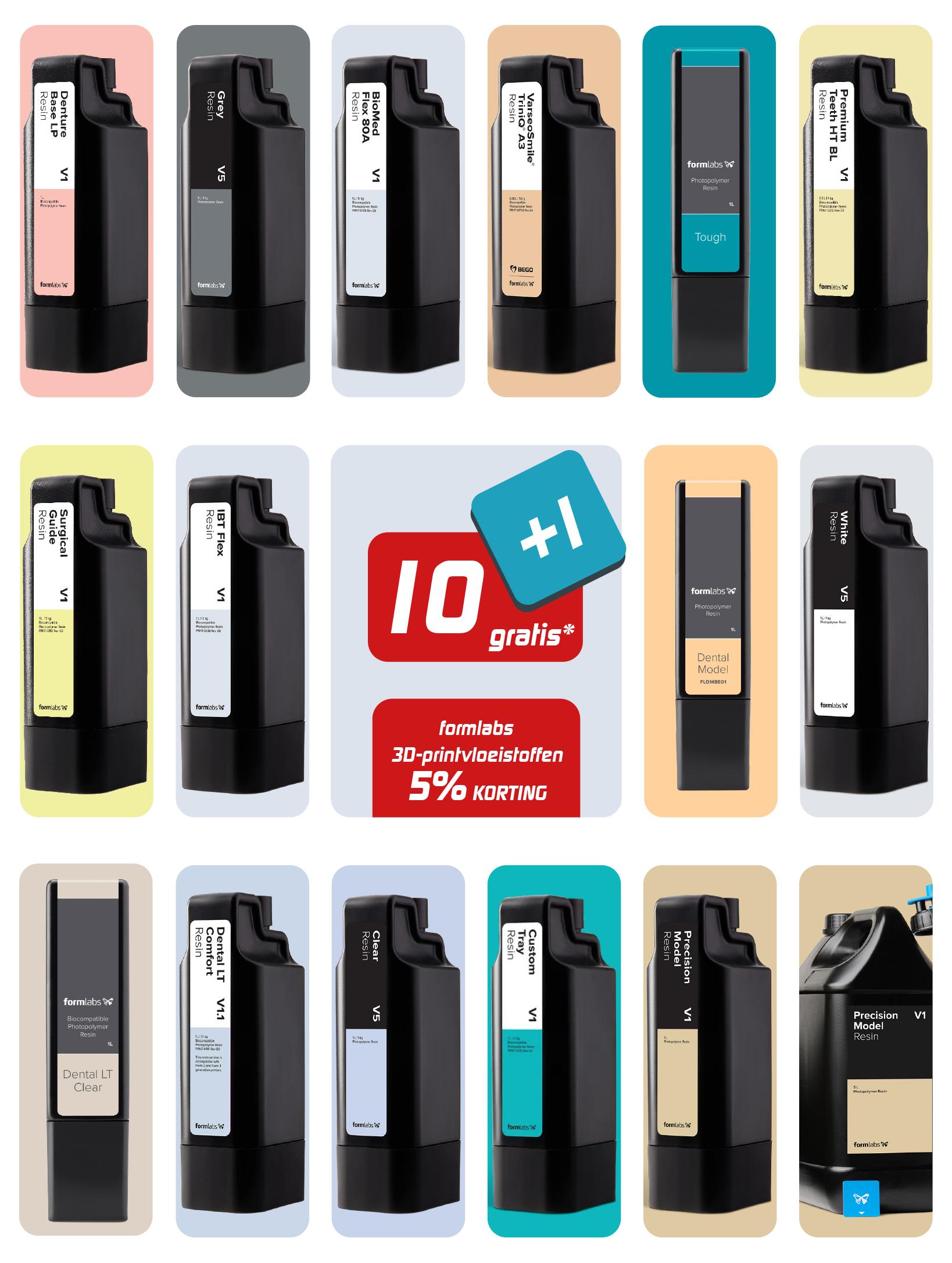 Bovendien ontvang je gratis 3D-printvloeistoffen ter waarde van tot €1000.