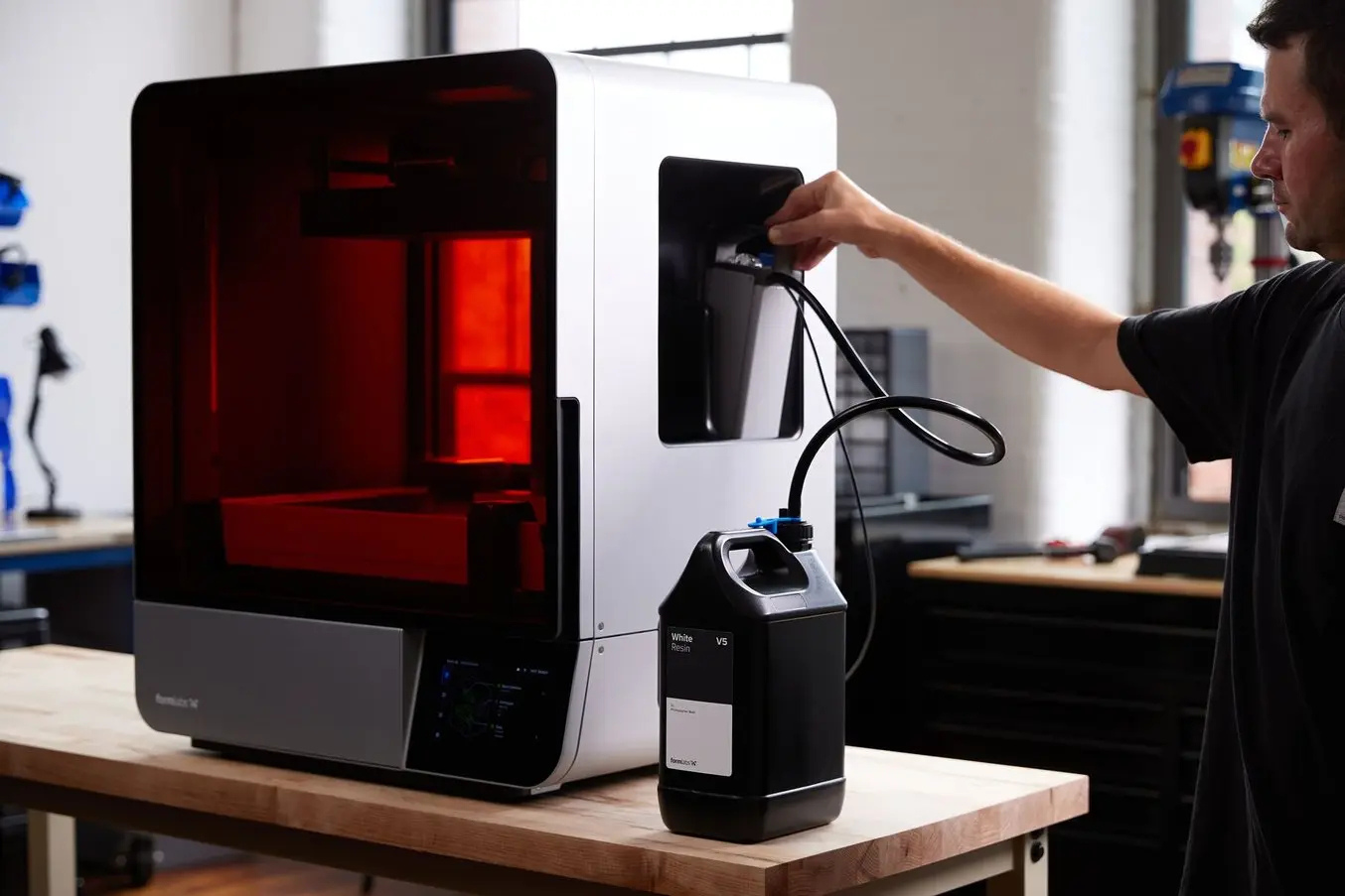 Resin Pump is een accessoire voor de stereolithografie (SLA) 3D-printers van Formlabs dat naadloos 5 liter printvloeistof via een pompsysteem in het reservoir van de printer pompt. Verbeter uw efficiëntie door minder vaak cartridges te vervangen en profiteer van vokumekortingen voor Formlabs SLA-printvloeistoffen.
