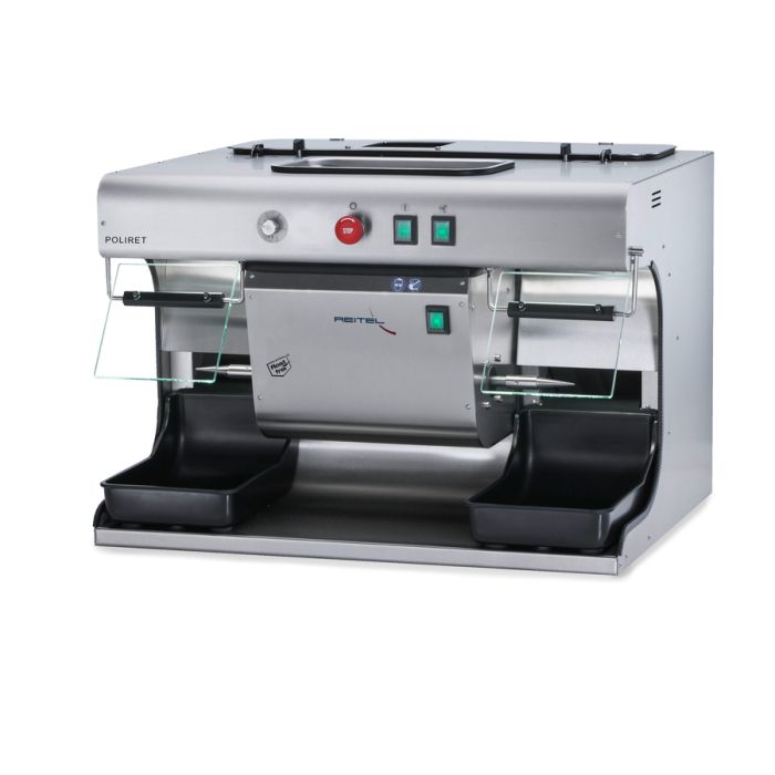 De polijstunit Poliret is voorzien van twee spindels met een traploos regelbaar toerental tussen 800 en 4500 tpm. Dit toestel garandeert een zuinig en nauwkeurig slijpen, polijsten, reinigen en borstelen van metalen en kunststof objecten. De filters van de geÏntegreerde afzuiging kunnen gewassen en opnieuw gebruikt worden. Hoge gebruiksveiligheid door de led-lamp met schaduwvrij zicht op het object, het veiligheidsglas en de makkelijk bereikbare noodstop met terugslagbeveiliging.